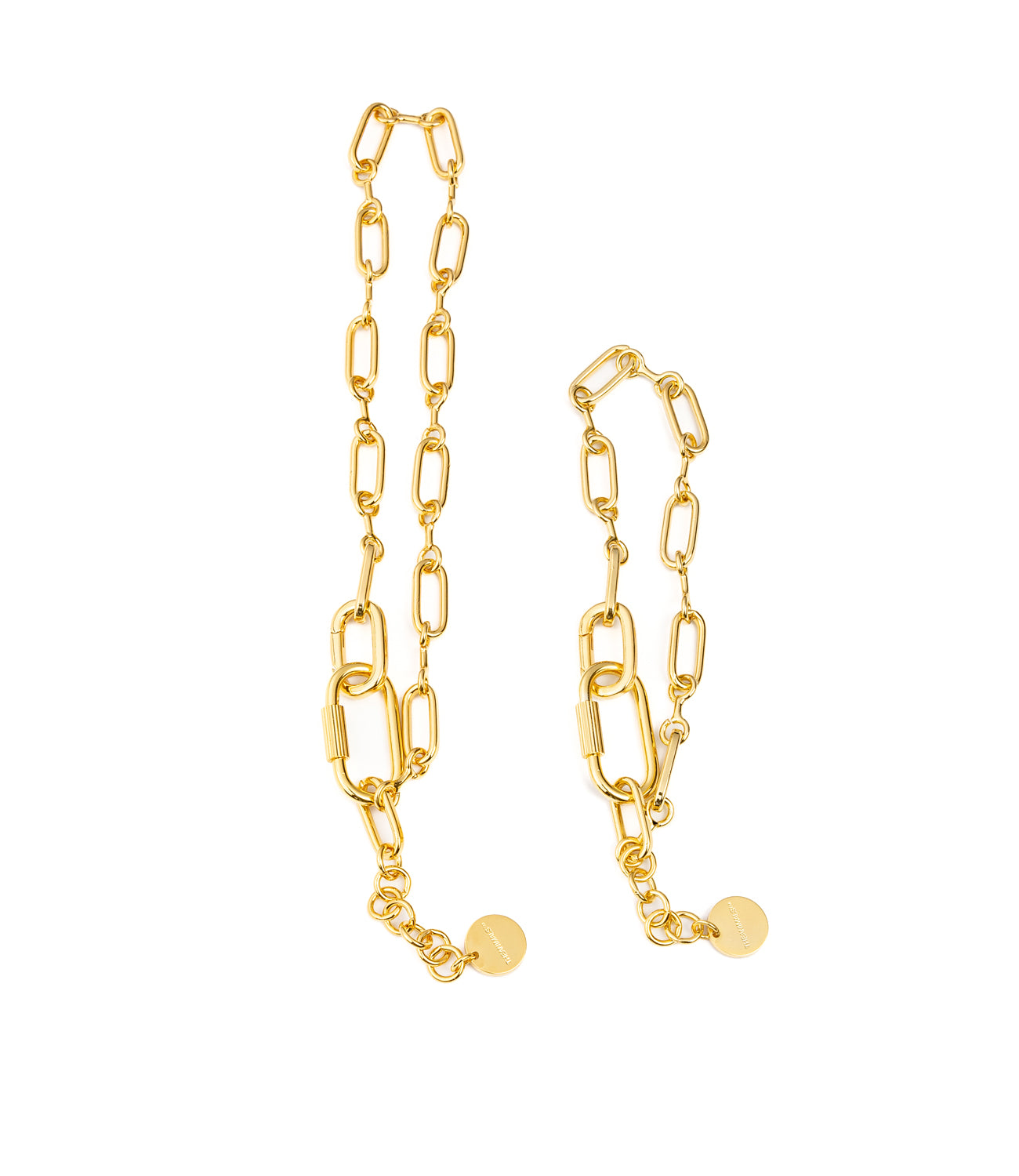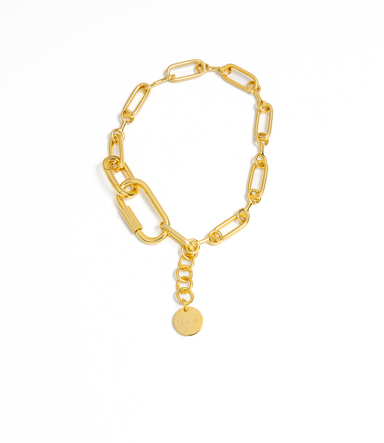 THEANIMALS™ species-fluid Fancy Chain Necklace. Available in both 18ct Gold-plated brass and Rhodium. Features special circular double links with connecting bar, jump ring and screw closure. Includes extension chain and custom small logo disc. Attach any Charmes from our range. Packaged with branded dust bag and box.