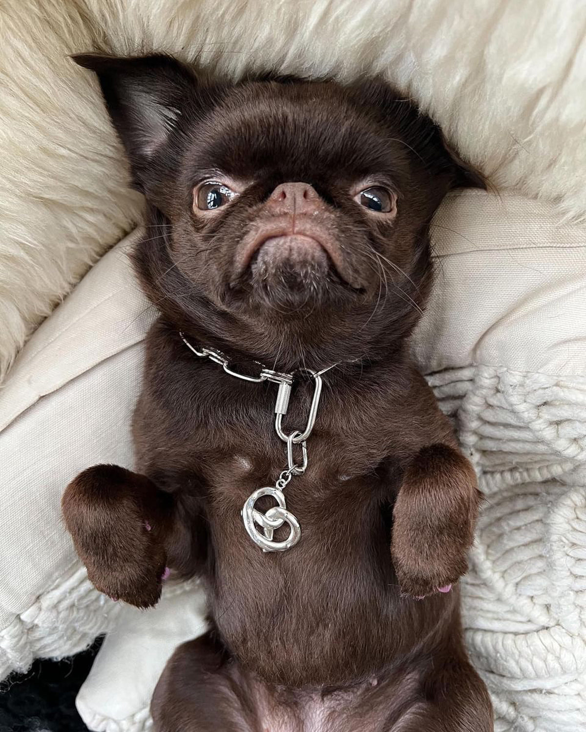 THEANIMALS™ species-fluid Pretzel Charme. Available in 18ct Gold-plated brass and Rhodium. Easy attach clasp, logo engraved and pairs with all Necklaces and Classique Collars. Packaged with branded dust bag and box.
